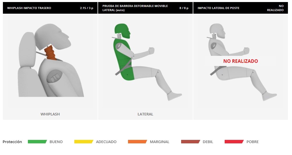 En cuanto a la protección de ocupantes infantiles, el desempeño en las pruebas dinámicas fue casi completo, pero algunos sistemas de retención infantil no pudieron instalarse correctamente.