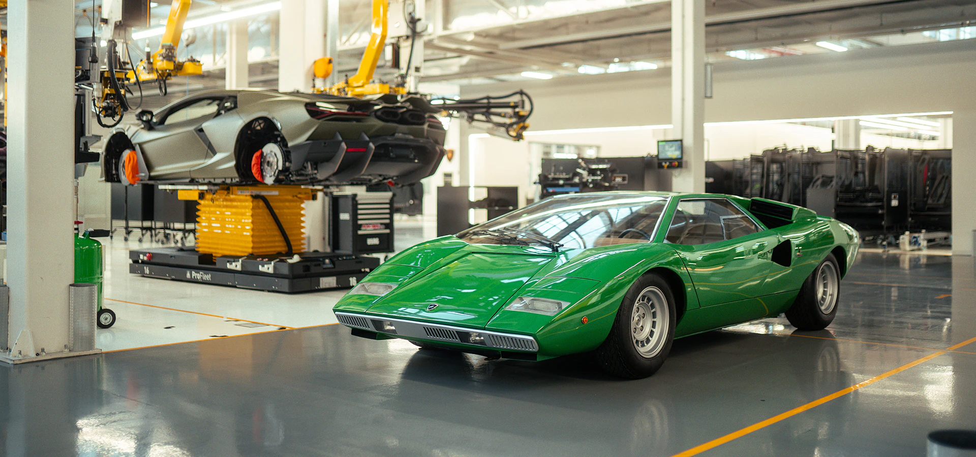 Medio siglo después, Lamborghini celebra su legado llevando el primer Countach LP 400 de vuelta a la misma línea de producción donde nació, la "Countach Assembly Line No.1", que hoy acoge al nuevo Lamborghini Revuelto, un híbrido enchufable de 12 cilindros.