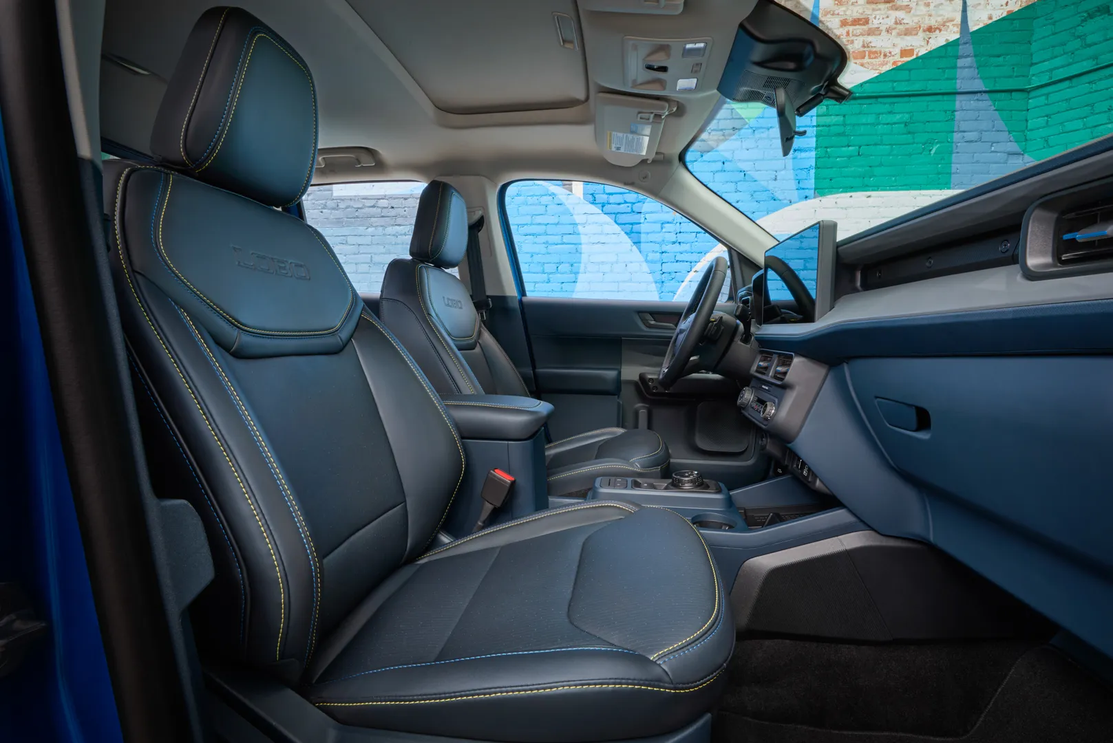 El Maverick Lobo se distingue visualmente de otros modelos con una parrilla exclusiva, guardabarros más anchos, faros antiniebla distintivos y llantas de 19 pulgadas. Su diseño aerodinámico incluye discos de freno en negro brillante y un techo a juego, ofreciendo un aspecto de camioneta de calle que no pasa desapercibido. El interior también refleja su carácter deportivo, con detalles inspirados en grafitis, costuras en azul y amarillo, y acabados únicos que destacan su exclusividad.