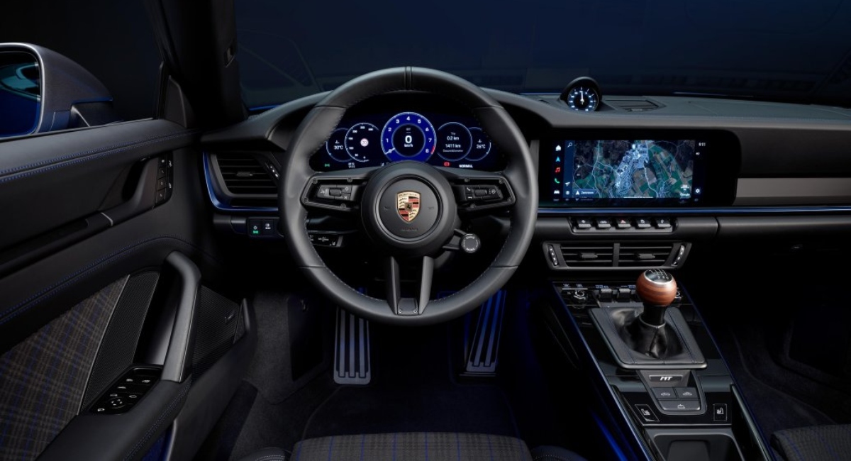 El interior del Carrera T combina un diseño deportivo con un toque de elegancia. Los asientos deportivos, con una parte central en tejido Sport-Tex, y detalles como el cronómetro del paquete Sport Chrono resaltan su carácter exclusivo. La palanca de cambios acortada y el pomo de madera laminada añaden un toque especial a la experiencia de conducción.