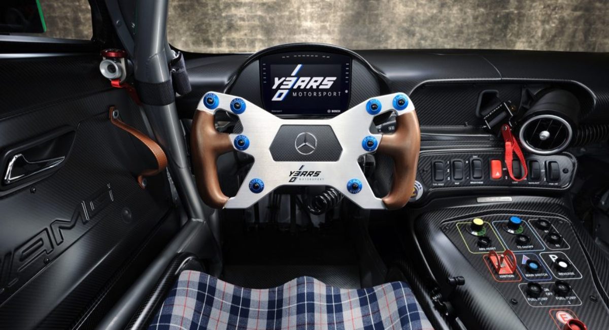 El interior toma inspiración del SLR 300 con el que Stirling Moss ganó la Mille Miglia en 1955. A pesar de ser un auto de pista, el habitáculo es un tributo a la simplicidad y eficiencia, con acabados en fibra de carbono y un volante inspirado en el GT3 de competición. Cuenta con un tablero digital Bosch DDU 10, que ofrece la información necesaria para exprimir al máximo el rendimiento del coche en cada vuelta.
