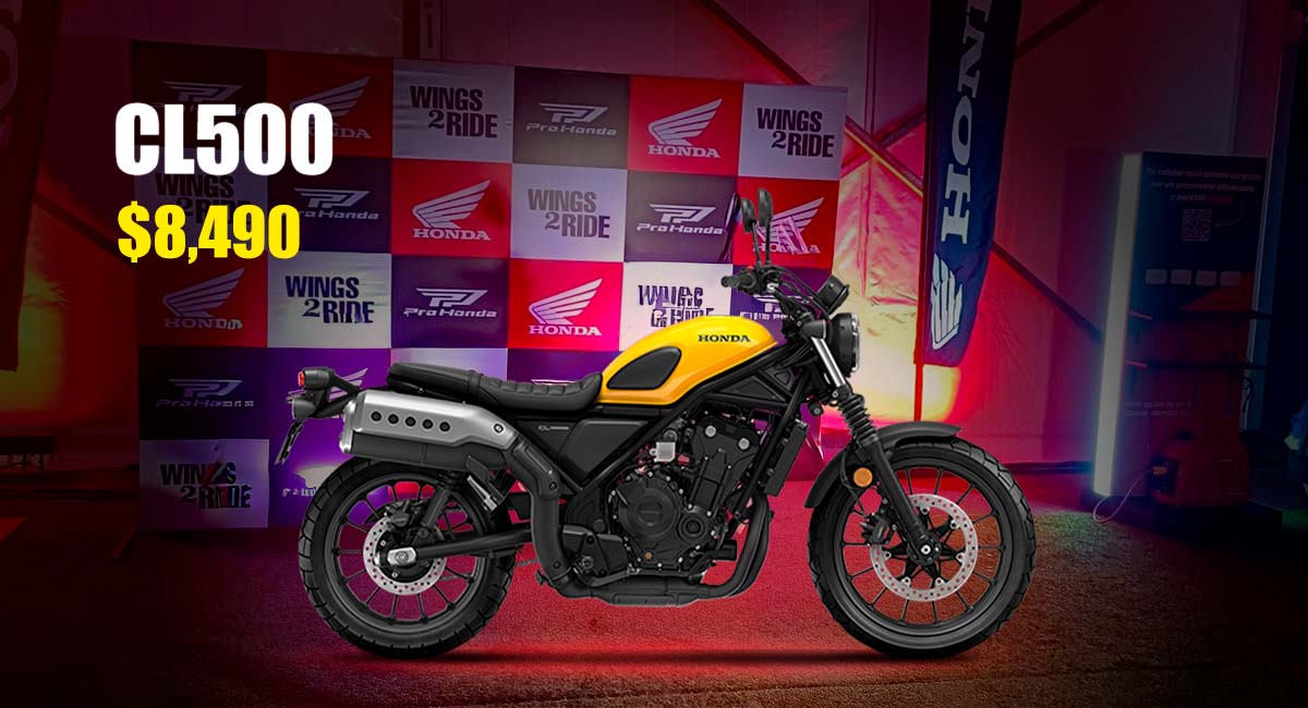 Inspirada en el legado scrambler, la CL500 combina un look retro-moderno con tecnología actual. Monta un motor bicilíndrico de 471cc, embrague anti rebote, suspensiones de recorrido extendido y frenos ABS, lo que la convierte en una moto ideal tanto para la ciudad como para escapadas off-road ligeras. Disponible en cuatro colores (amarillo, negro, marrón y verde), con precio de $8,490.