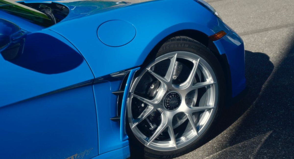 Los detalles también son dignos de mención. Las llantas de magnesio ligero y los bordes de las ventanillas laterales están pintados en Plata Brillante, creando un contraste elegante con el azul dominante. Además, el borde desprendible en la parte trasera y el logotipo de Porsche están pintados en el exclusivo "Dani Blue", realzando aún más el carácter único del automóvil.