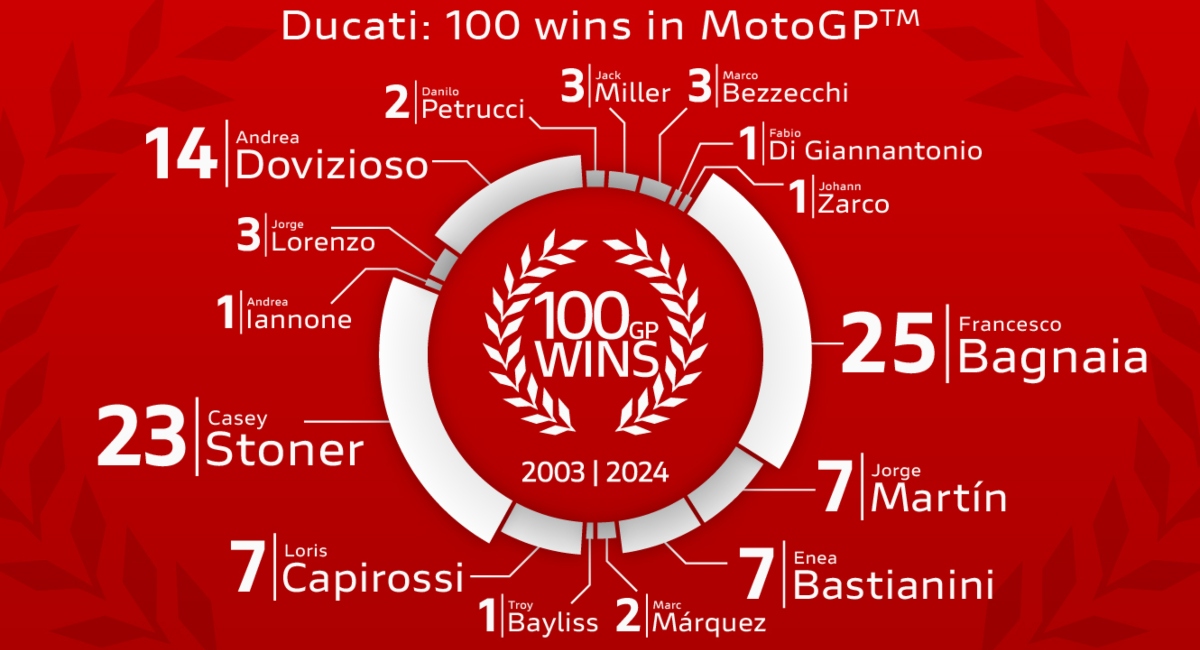 Ducati: el primer fabricante europeo en alcanzar las 100 victorias en MotoGP