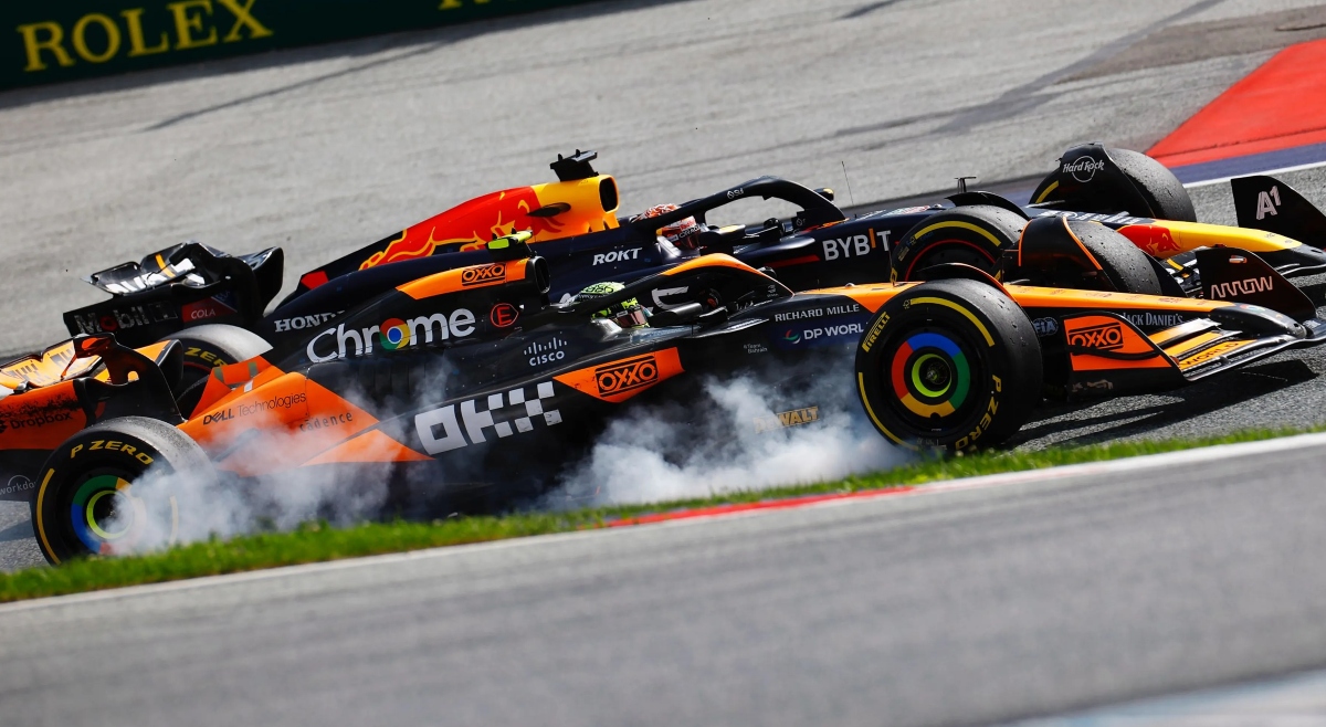 Lo sorprendente de todo llegó en la vuelta 64 del Gran Premio Austria protagonizado por Max Verstappen y Lando Norris. Ambos pilotos sufrieron pinchazos tras hacer contacto, lo que obligó a Norris a retirarse de la competencia mientras Verstappen logró recuperarse hasta la quinta posición.