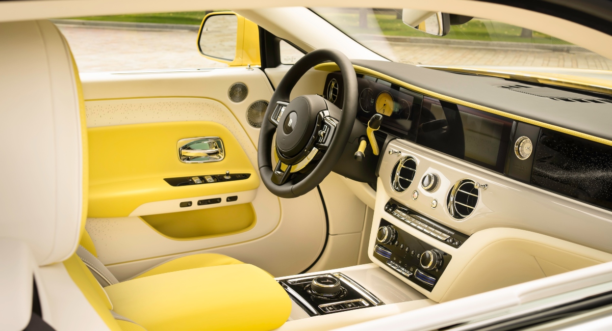 El interior del Spectre Semaphore no se queda atrás en cuanto a lujo y personalización. Combina tonos Bespoke Lemon Yellow y Citrine Yellow en los asientos, puertas Starlight y panel de instrumentos, con detalles contrastantes en Grace White y Slate Grey, acentuados con costuras en amarillo limón. Los diales digitales también han sido personalizados para complementar la vibrante combinación de colores del vehículo, aprovechando el potencial del sistema operativo SPIRIT de Rolls-Royce.